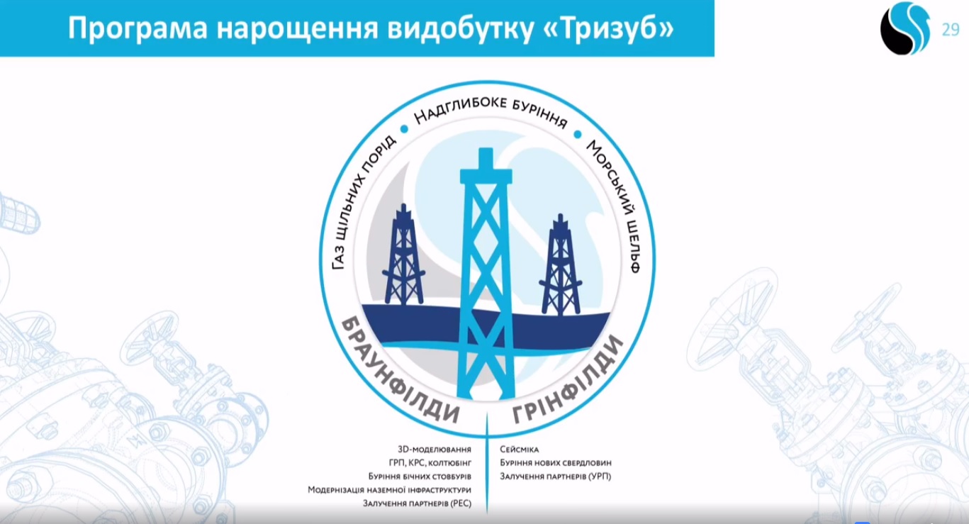 АТ «Укргазвидобування» буде впроваджувати нову програму з видобутку природного газу під назвою «Тризуб». Про це повідомив директор з інтегрованого газового бізнесу НАК «Нафтогаз України» Андрій Фаворов на прес-конференції «Свій газ: підсумки та перспективи».